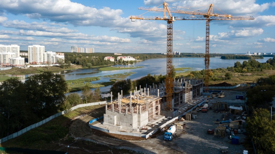 Летом на побережье Нижне-Исетского пруда началось строительство нового квартала-гиганта «Сказы Бажова». Проект реализует группа компаний «Ривьера Инвест Екатеринбург». Поочерёдно здесь будут возведены и сданы пять многосекционных жилых домов переменной этажности, которые соединит километровая городская набережная.